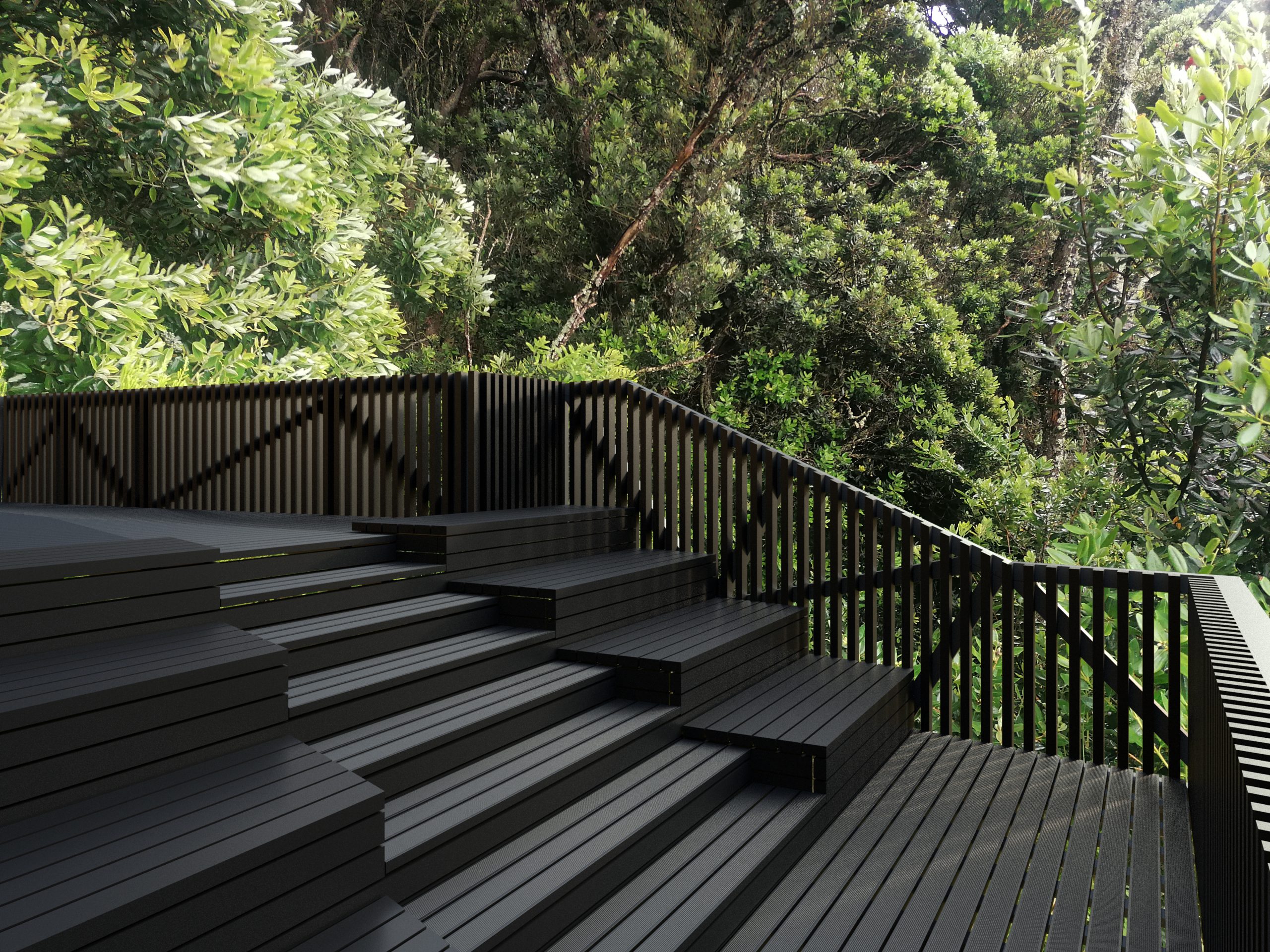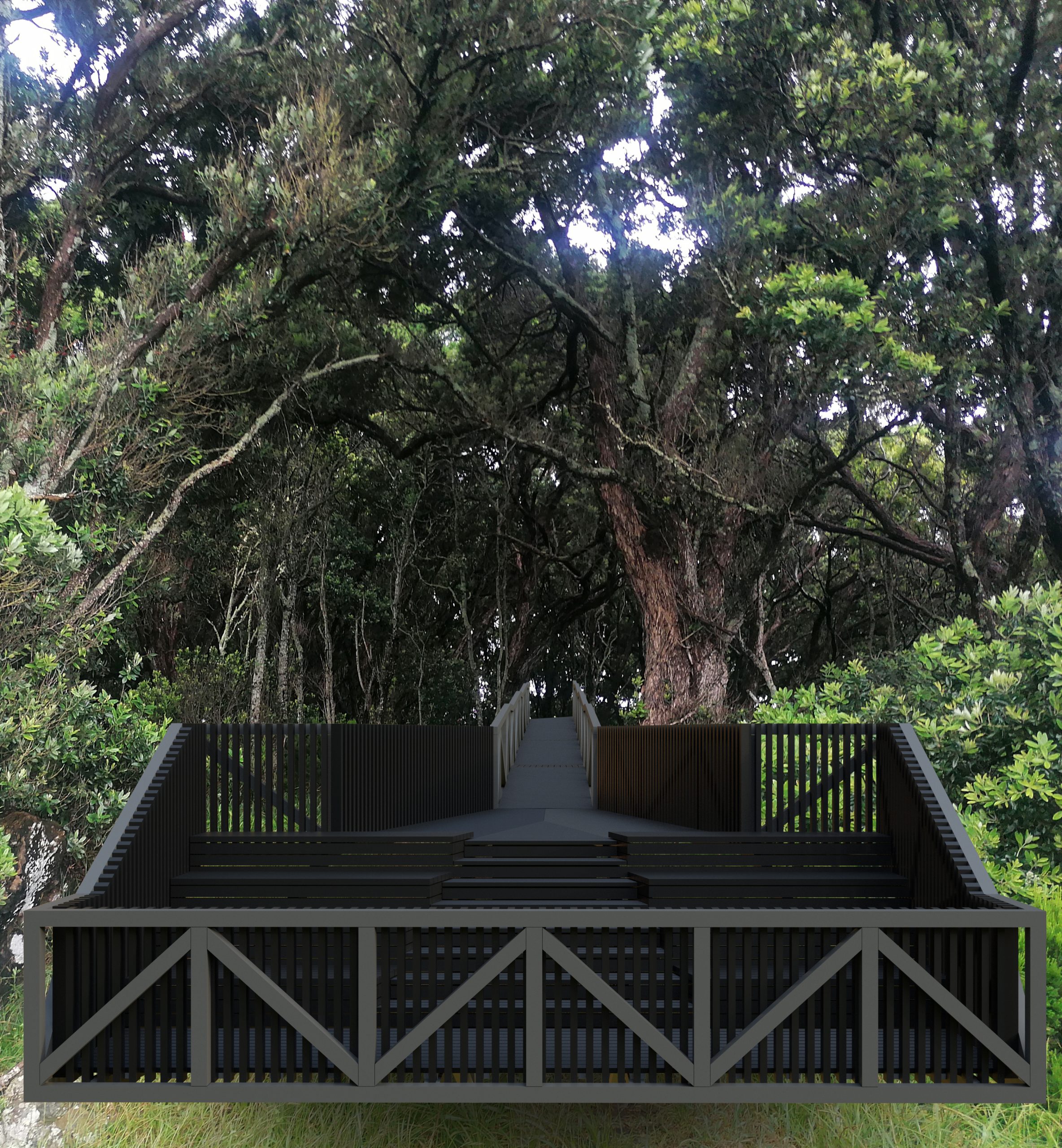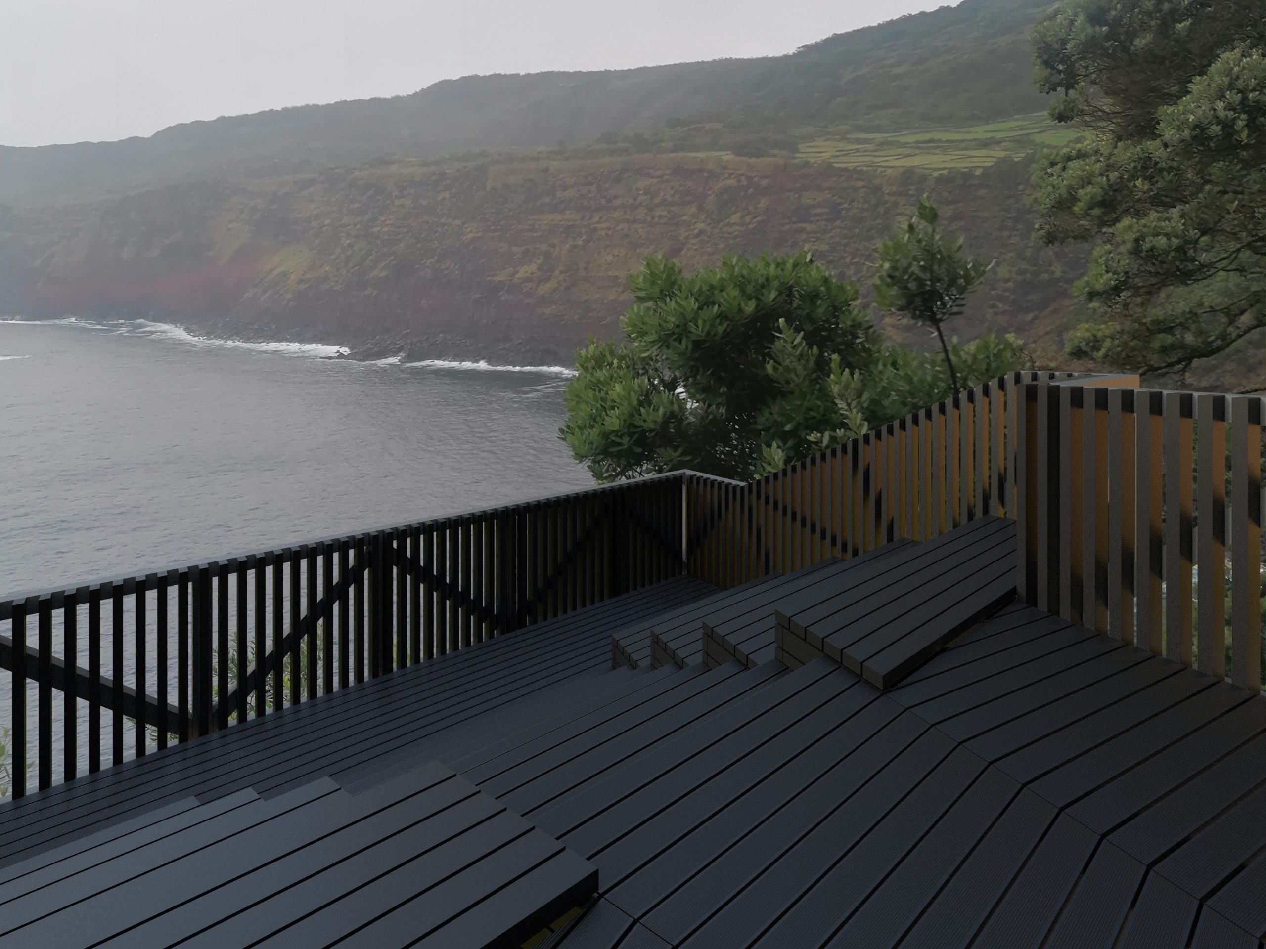 Um micro-anfiteatro no alto de uma falésia. Um percurso acessível conduz até uma zona de permanência para contemplação. O miradouro convida a ficar, para um breve descanso, ler um livro ou, pontualmente, assistir a uma performance musical ou a um recital de poesia.